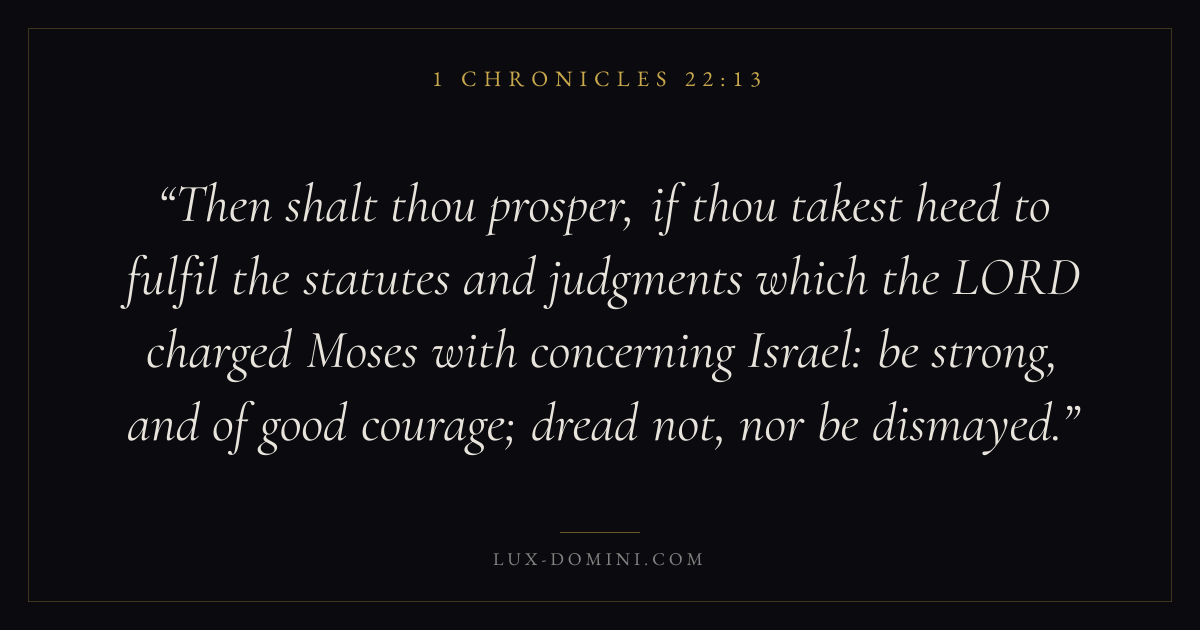 Then shalt thou prosper, if thou takest heed to fulfil the statutes and judgments which the LORD charged Moses with concerning Israel: be strong, and of good courage; dread not, nor be dismayed.