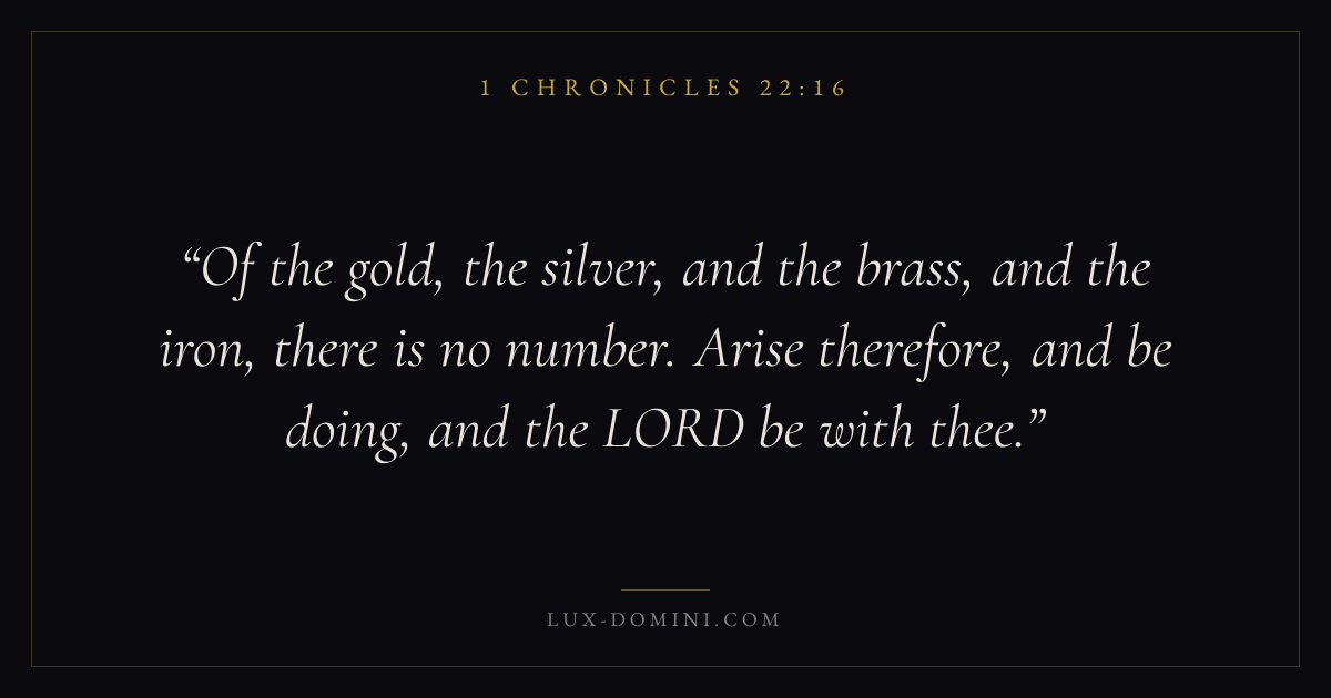 Of the gold, the silver, and the brass, and the iron, there is no number. Arise therefore, and be doing, and the LORD be with thee.
