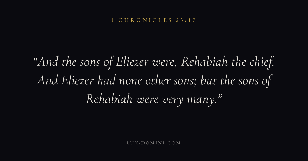 And the sons of Eliezer were, Rehabiah the chief. And Eliezer had none other sons; but the sons of Rehabiah were very many.