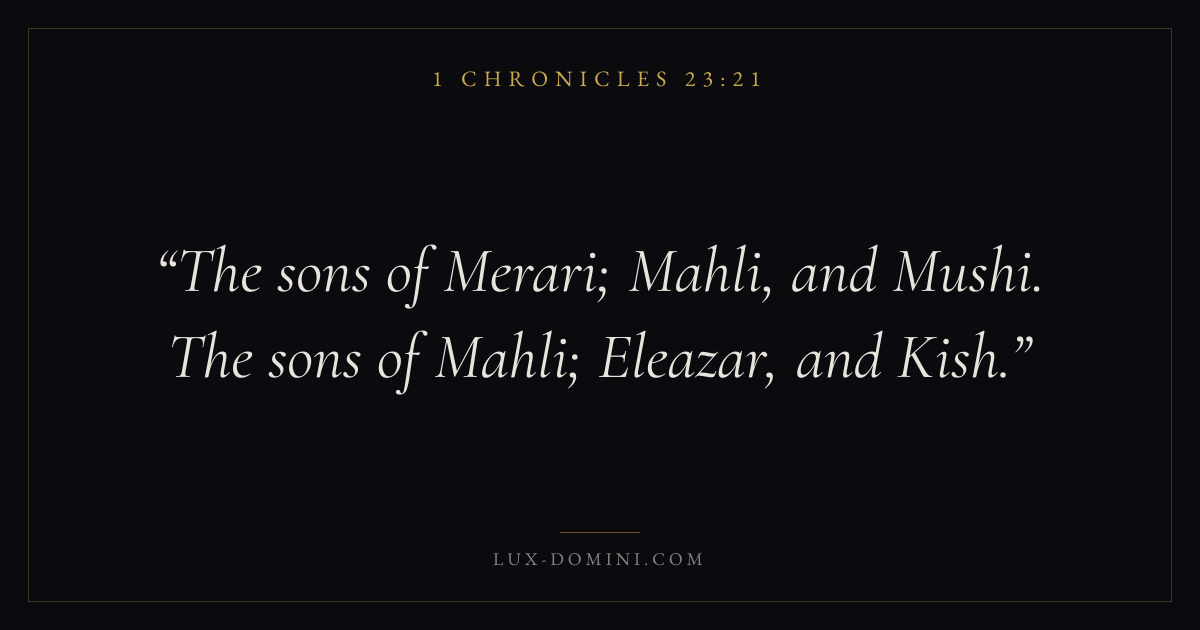 The sons of Merari; Mahli, and Mushi. The sons of Mahli; Eleazar, and Kish.