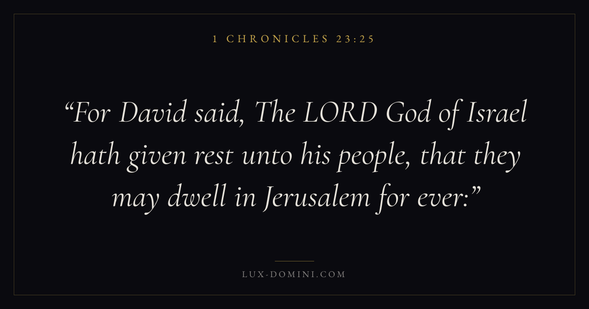 For David said, The LORD God of Israel hath given rest unto his people, that they may dwell in Jerusalem for ever: