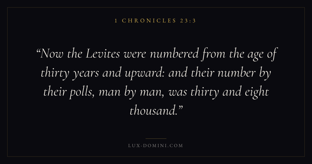 Now the Levites were numbered from the age of thirty years and upward: and their number by their polls, man by man, was thirty and eight thousand.