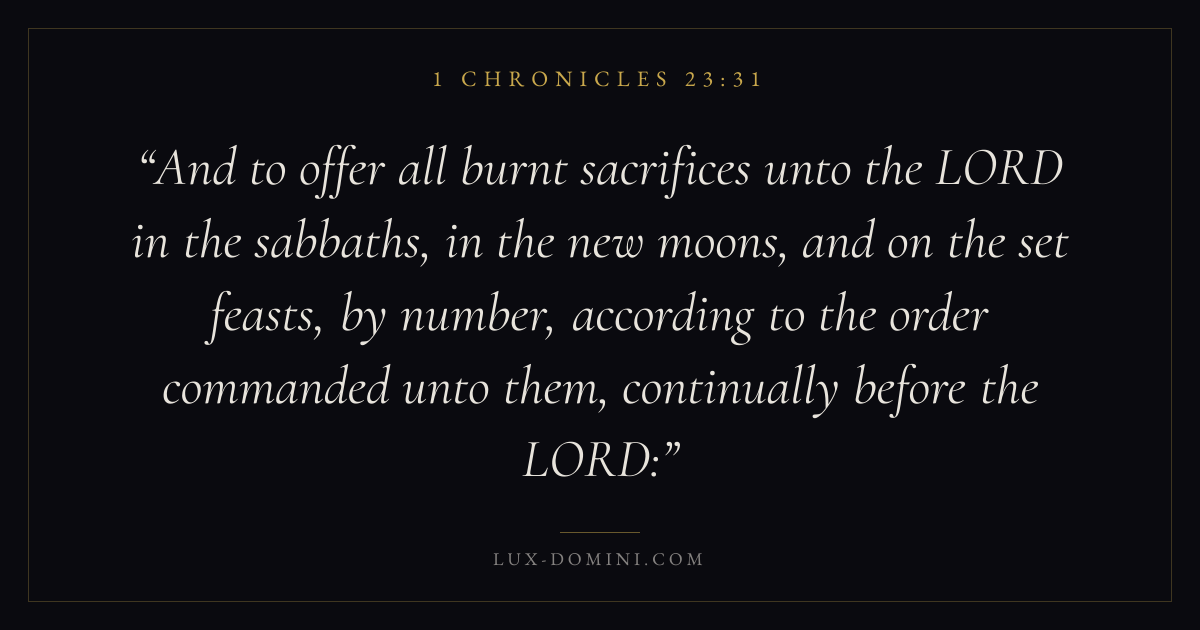 And to offer all burnt sacrifices unto the LORD in the sabbaths, in the new moons, and on the set feasts, by number, according to the order commanded unto them, continually before the LORD: