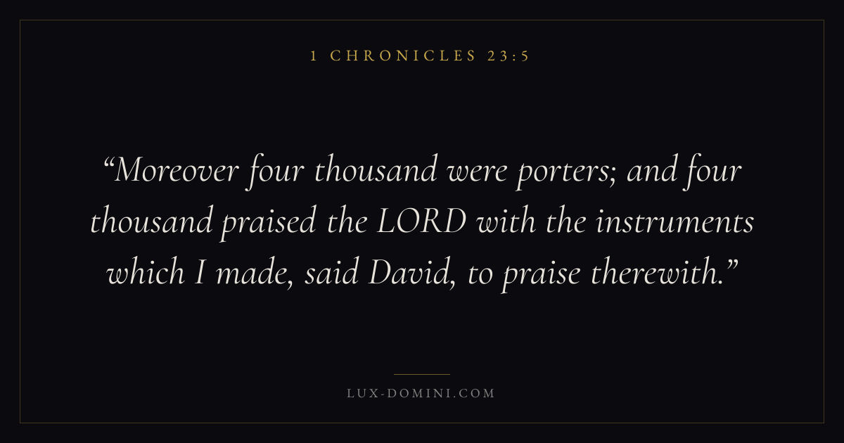 Moreover four thousand were porters; and four thousand praised the LORD with the instruments which I made, said David, to praise therewith.