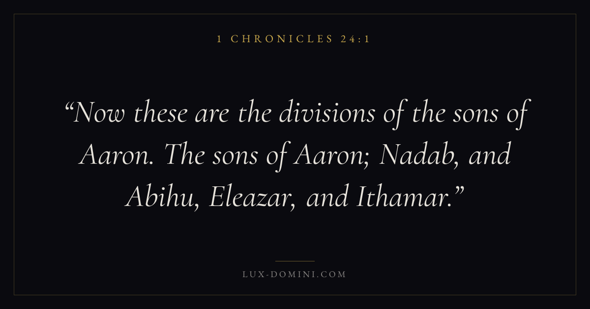 Now these are the divisions of the sons of Aaron. The sons of Aaron; Nadab, and Abihu, Eleazar, and Ithamar.