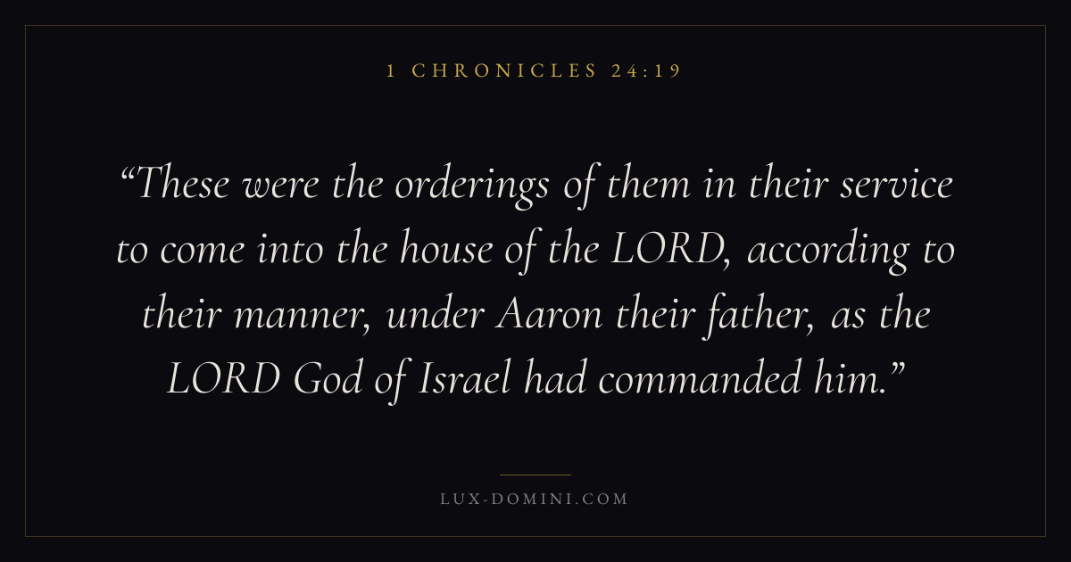 These were the orderings of them in their service to come into the house of the LORD, according to their manner, under Aaron their father, as the LORD God of Israel had commanded him.