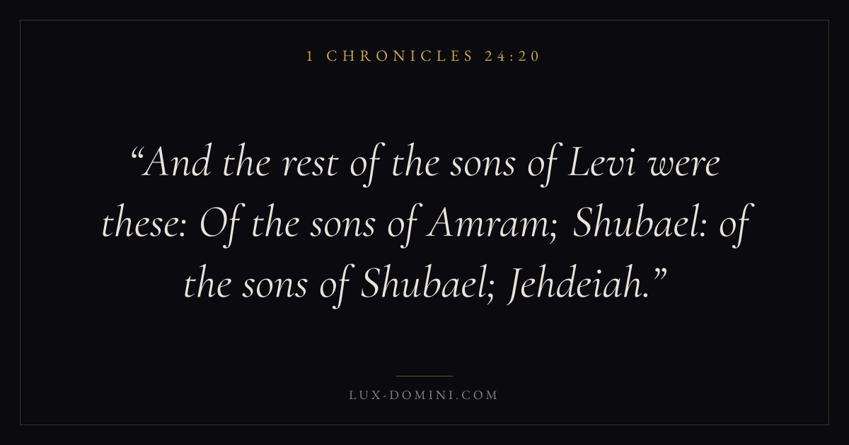And the rest of the sons of Levi were these: Of the sons of Amram; Shubael: of the sons of Shubael; Jehdeiah.