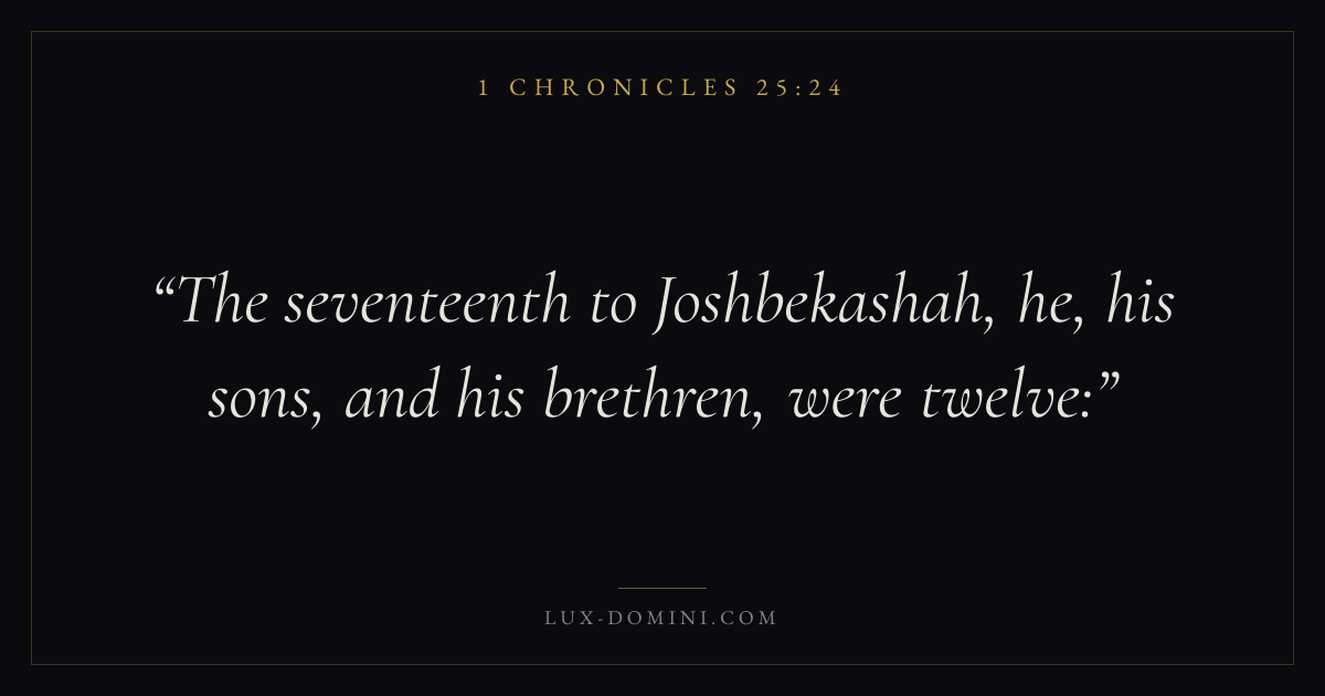 The seventeenth to Joshbekashah, he, his sons, and his brethren, were twelve: