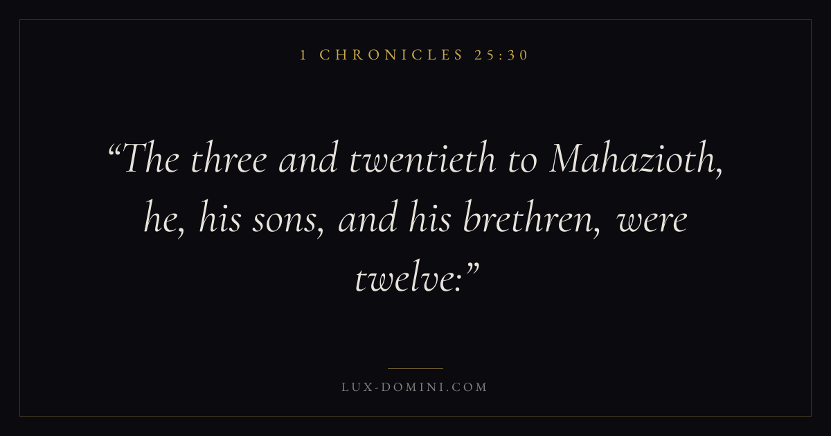 The three and twentieth to Mahazioth, he, his sons, and his brethren, were twelve: