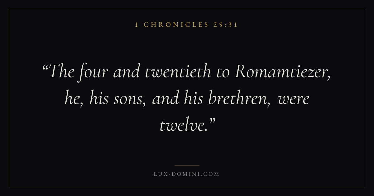 The four and twentieth to Romamtiezer, he, his sons, and his brethren, were twelve.