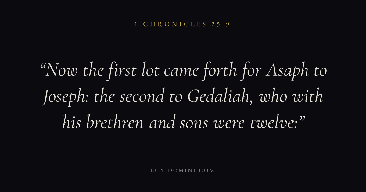 Now the first lot came forth for Asaph to Joseph: the second to Gedaliah, who with his brethren and sons were twelve: