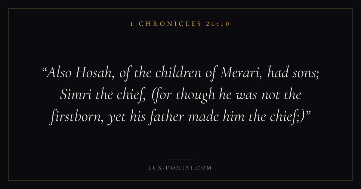 Also Hosah, of the children of Merari, had sons; Simri the chief, (for though he was not the firstborn, yet his father made him the chief;)