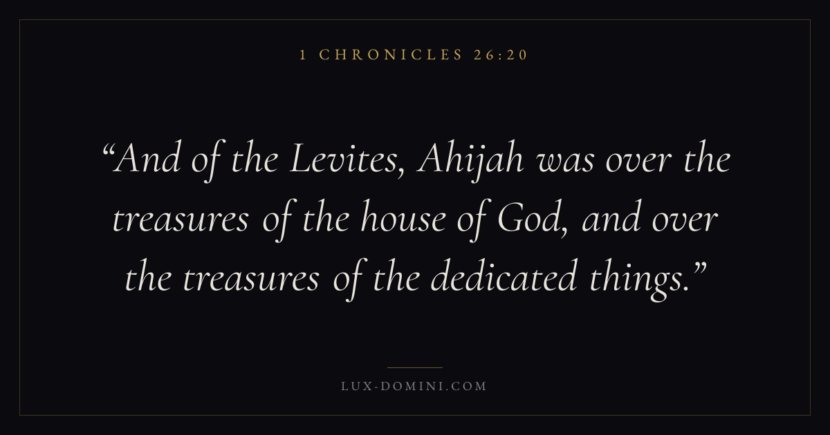 And of the Levites, Ahijah was over the treasures of the house of God, and over the treasures of the dedicated things.