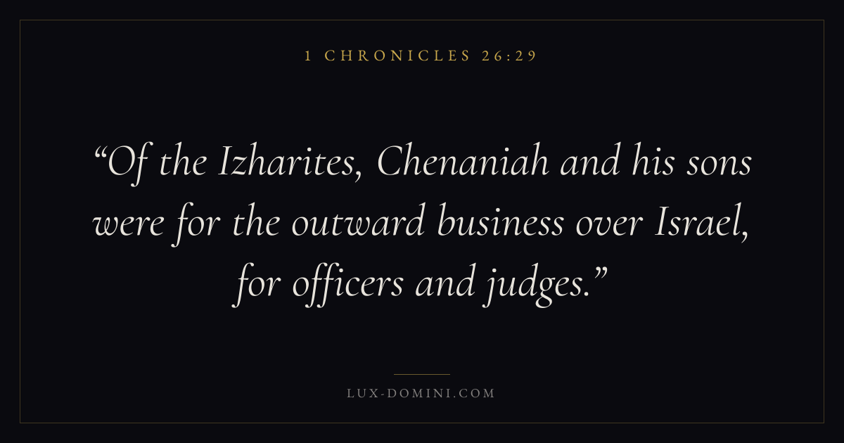 Of the Izharites, Chenaniah and his sons were for the outward business over Israel, for officers and judges.