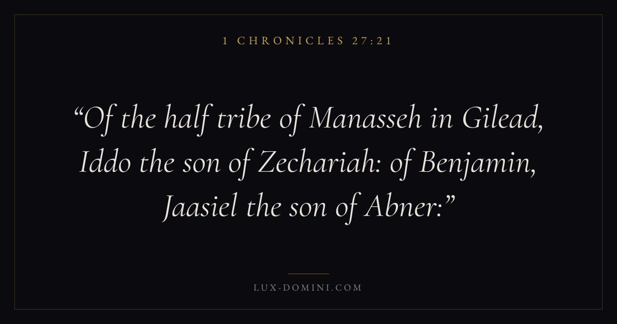 Of the half tribe of Manasseh in Gilead, Iddo the son of Zechariah: of Benjamin, Jaasiel the son of Abner: