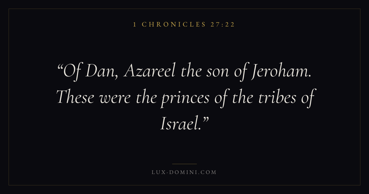 Of Dan, Azareel the son of Jeroham. These were the princes of the tribes of Israel.