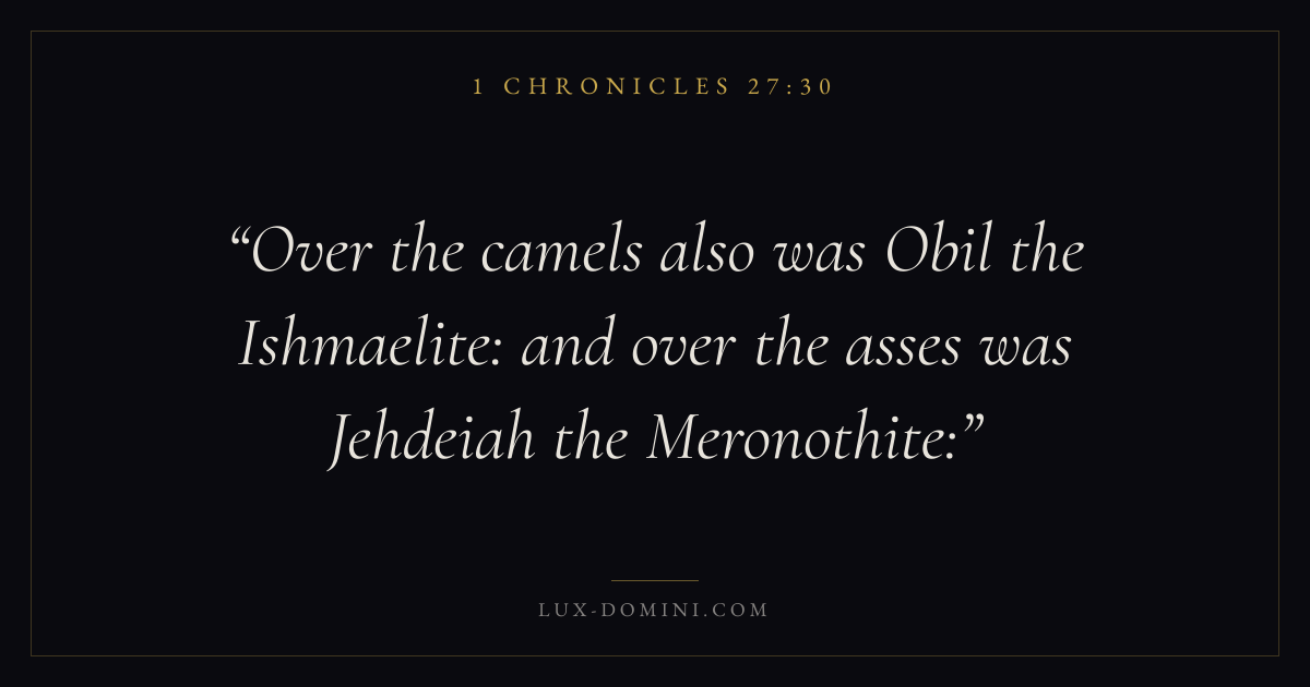 Over the camels also was Obil the Ishmaelite: and over the asses was Jehdeiah the Meronothite: