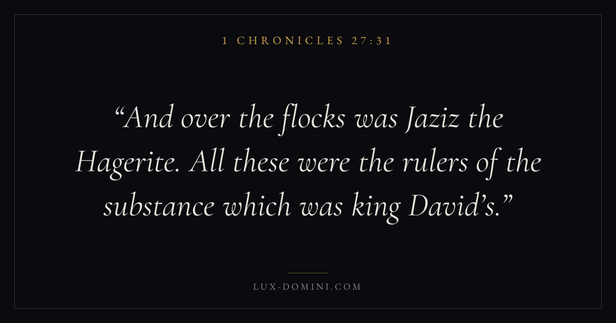 And over the flocks was Jaziz the Hagerite. All these were the rulers of the substance which was king David’s.