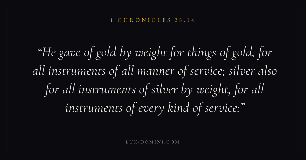 He gave of gold by weight for things of gold, for all instruments of all manner of service; silver also for all instruments of silver by weight, for all instruments of every kind of service: