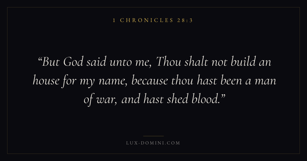 But God said unto me, Thou shalt not build an house for my name, because thou hast been a man of war, and hast shed blood.