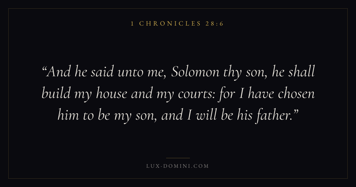 And he said unto me, Solomon thy son, he shall build my house and my courts: for I have chosen him to be my son, and I will be his father.