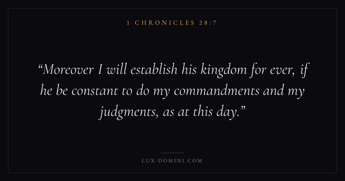 Moreover I will establish his kingdom for ever, if he be constant to do my commandments and my judgments, as at this day.