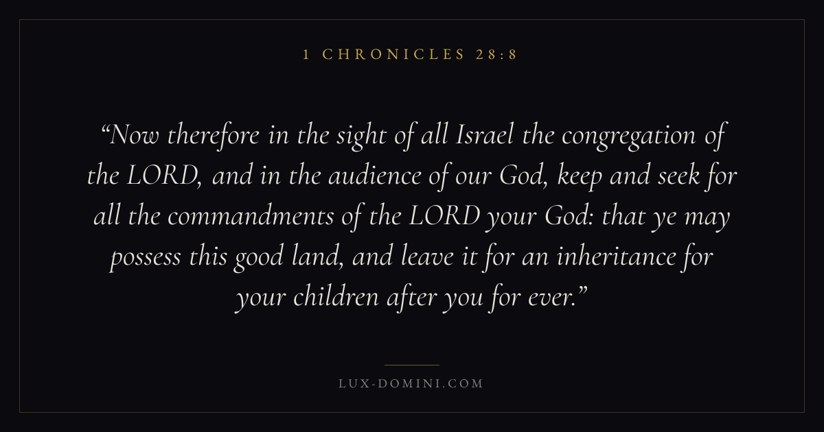 Now therefore in the sight of all Israel the congregation of the LORD, and in the audience of our God, keep and seek for all the commandments of the LORD your God: that ye may possess this good land, and leave it for an inheritance for your children after you for ever.