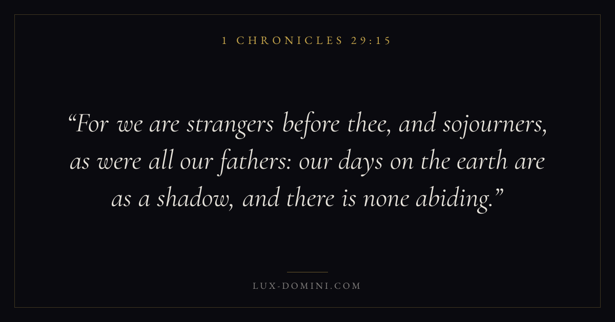 For we are strangers before thee, and sojourners, as were all our fathers: our days on the earth are as a shadow, and there is none abiding.