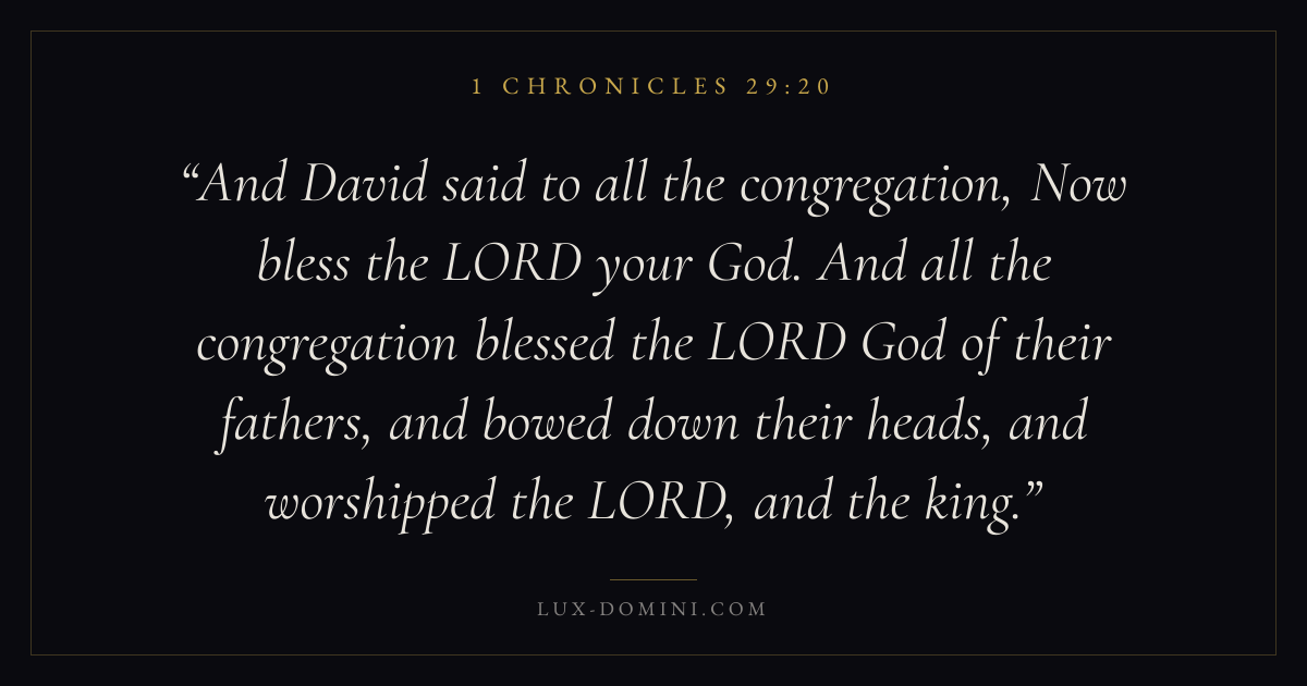 And David said to all the congregation, Now bless the LORD your God. And all the congregation blessed the LORD God of their fathers, and bowed down their heads, and worshipped the LORD, and the king.