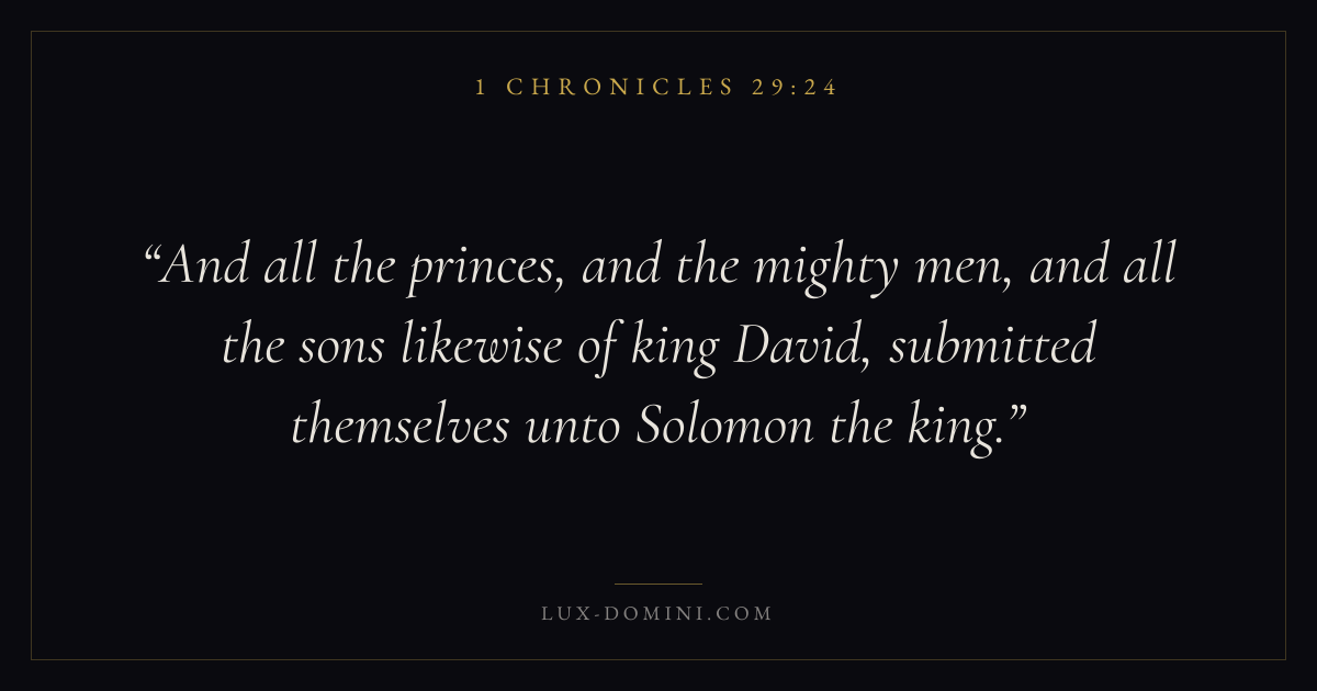 And all the princes, and the mighty men, and all the sons likewise of king David, submitted themselves unto Solomon the king.