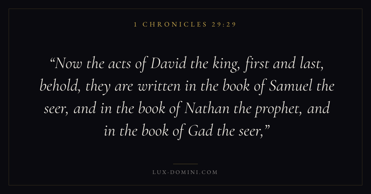 Now the acts of David the king, first and last, behold, they are written in the book of Samuel the seer, and in the book of Nathan the prophet, and in the book of Gad the seer,