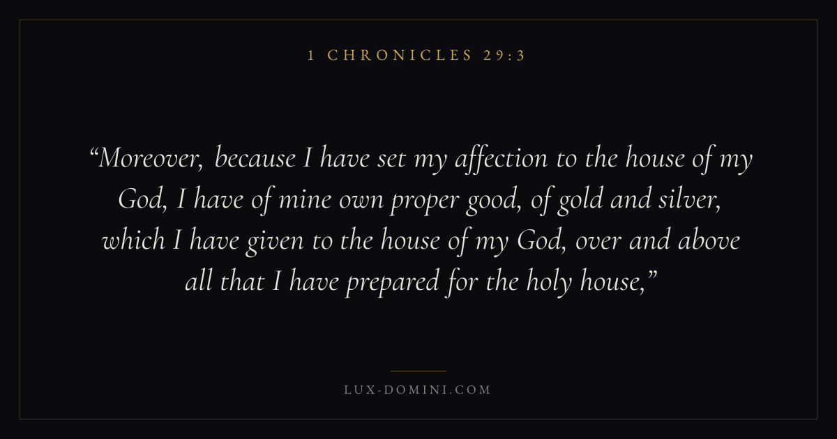 Moreover, because I have set my affection to the house of my God, I have of mine own proper good, of gold and silver, which I have given to the house of my God, over and above all that I have prepared for the holy house,