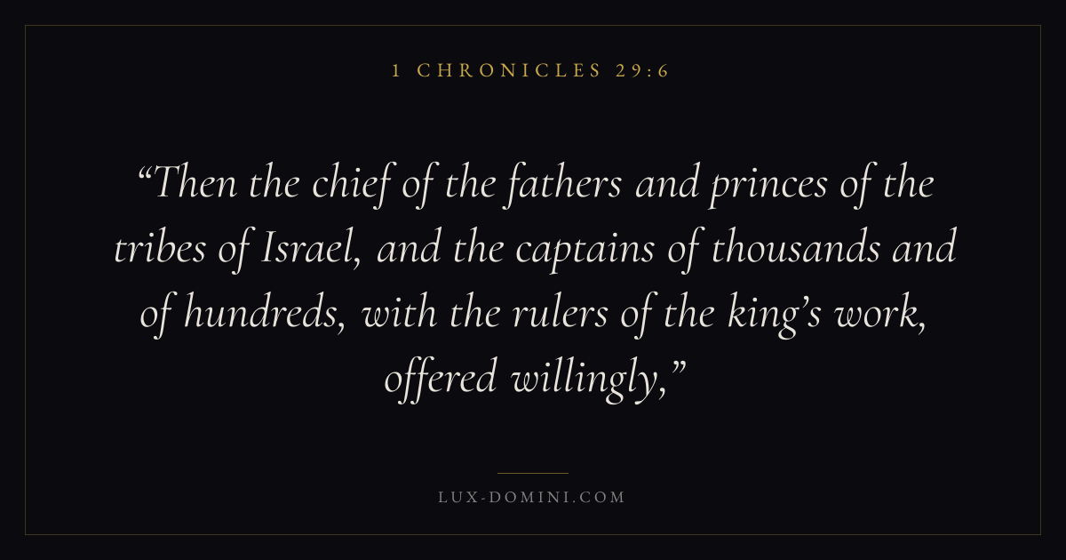 Then the chief of the fathers and princes of the tribes of Israel, and the captains of thousands and of hundreds, with the rulers of the king’s work, offered willingly,