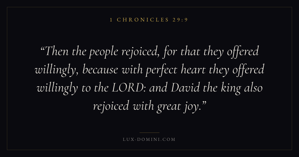 Then the people rejoiced, for that they offered willingly, because with perfect heart they offered willingly to the LORD: and David the king also rejoiced with great joy.