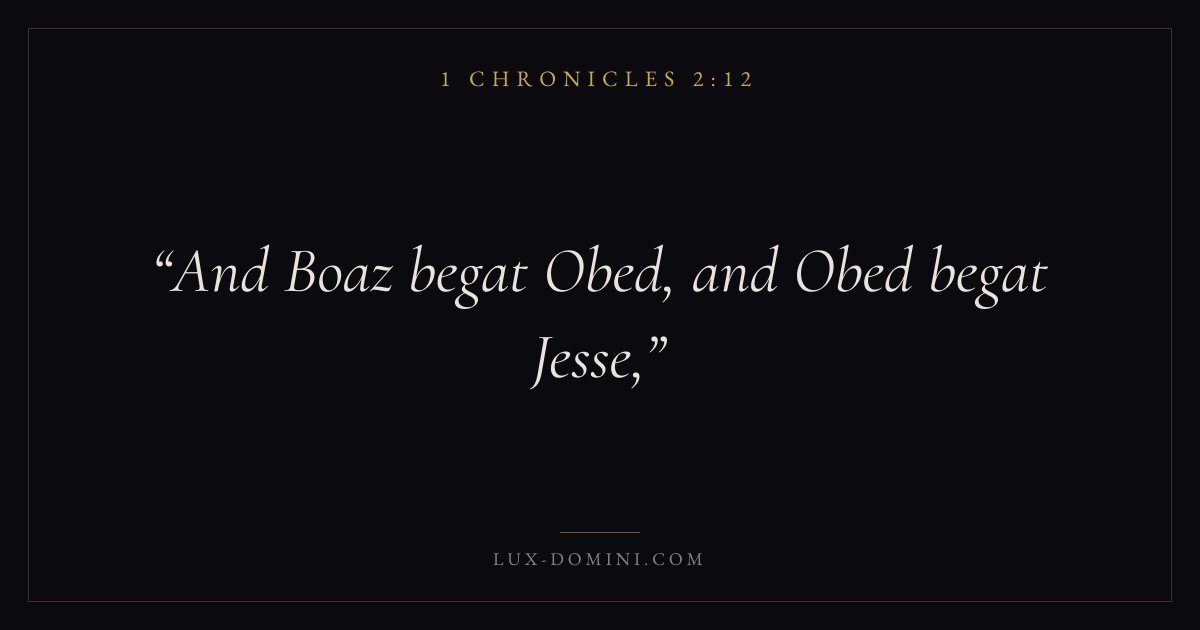 Serving; worshipping. (1. ) A son of Boaz and Ruth ( Ruth 4:21 , 22), and the grandfather of David ( Matt. 1:5 ). (2. ) 1 Chr. 2:34-38 . (3. ) 1 Chr. 26:7 . (4. ) 2 Chr. 23:1 .