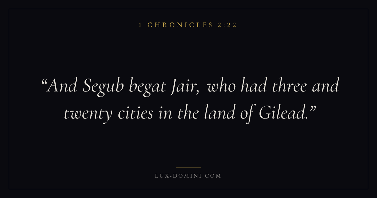 And Segub begat Jair, who had three and twenty cities in the land of Gilead.