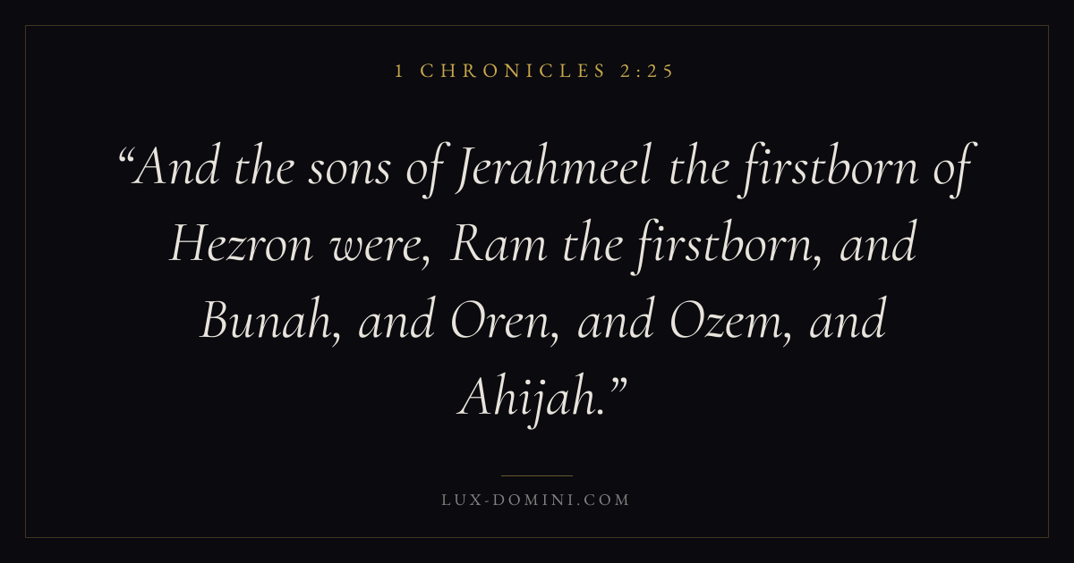 And the sons of Jerahmeel the firstborn of Hezron were, Ram the firstborn, and Bunah, and Oren, and Ozem, and Ahijah.
