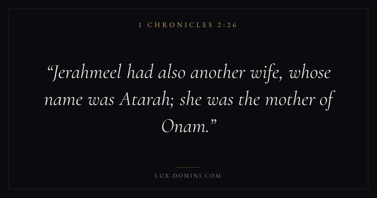 Jerahmeel had also another wife, whose name was Atarah; she was the mother of Onam.