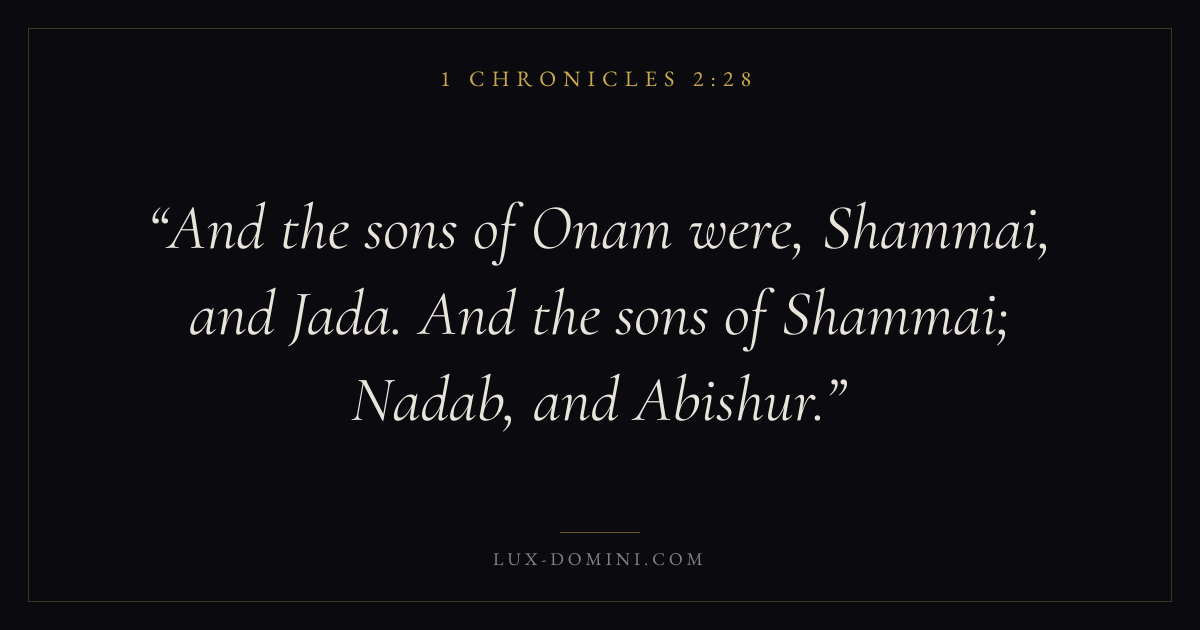 And the sons of Onam were, Shammai, and Jada. And the sons of Shammai; Nadab, and Abishur.