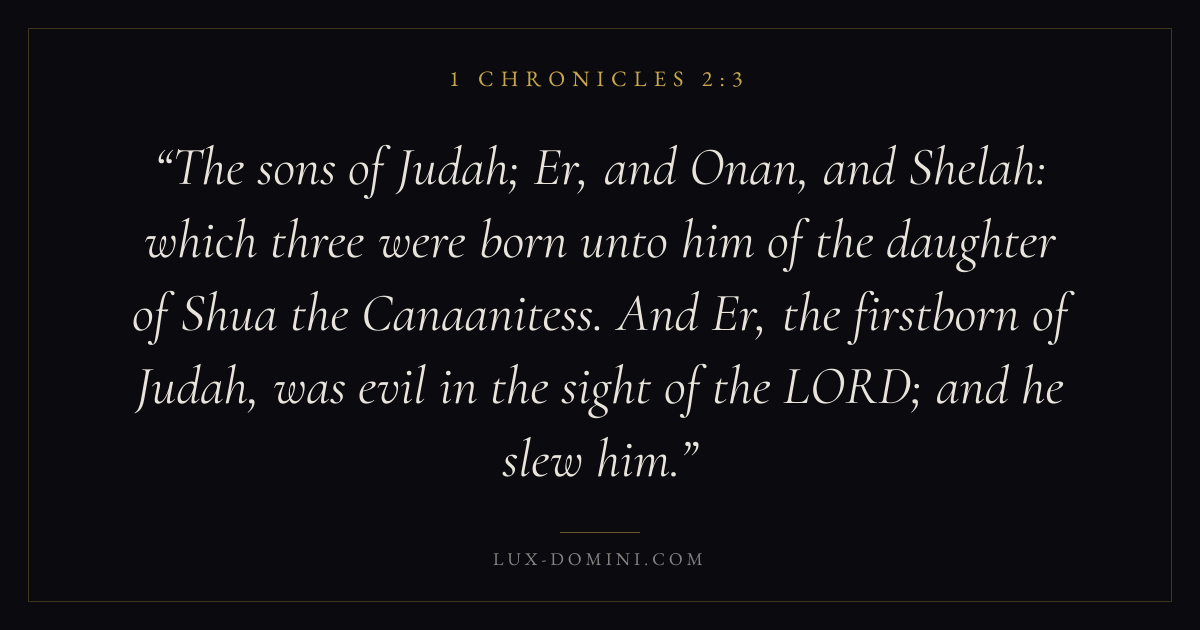 The sons of Judah; Er, and Onan, and Shelah: which three were born unto him of the daughter of Shua the Canaanitess. And Er, the firstborn of Judah, was evil in the sight of the LORD; and he slew him.
