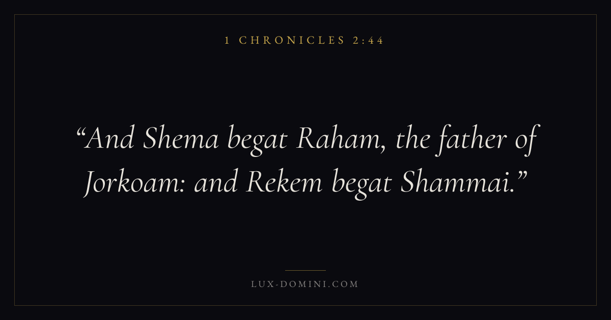 And Shema begat Raham, the father of Jorkoam: and Rekem begat Shammai.