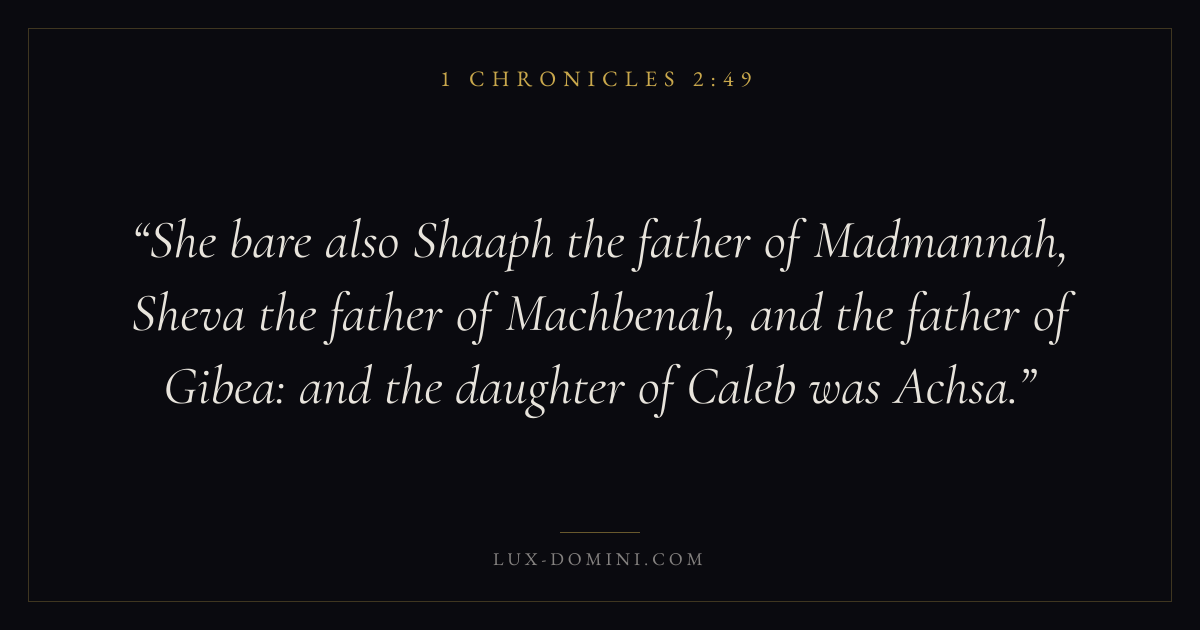 She bare also Shaaph the father of Madmannah, Sheva the father of Machbenah, and the father of Gibea: and the daughter of Caleb was Achsa.