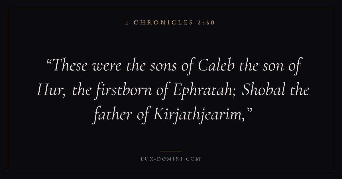 These were the sons of Caleb the son of Hur, the firstborn of Ephratah; Shobal the father of Kirjathjearim,