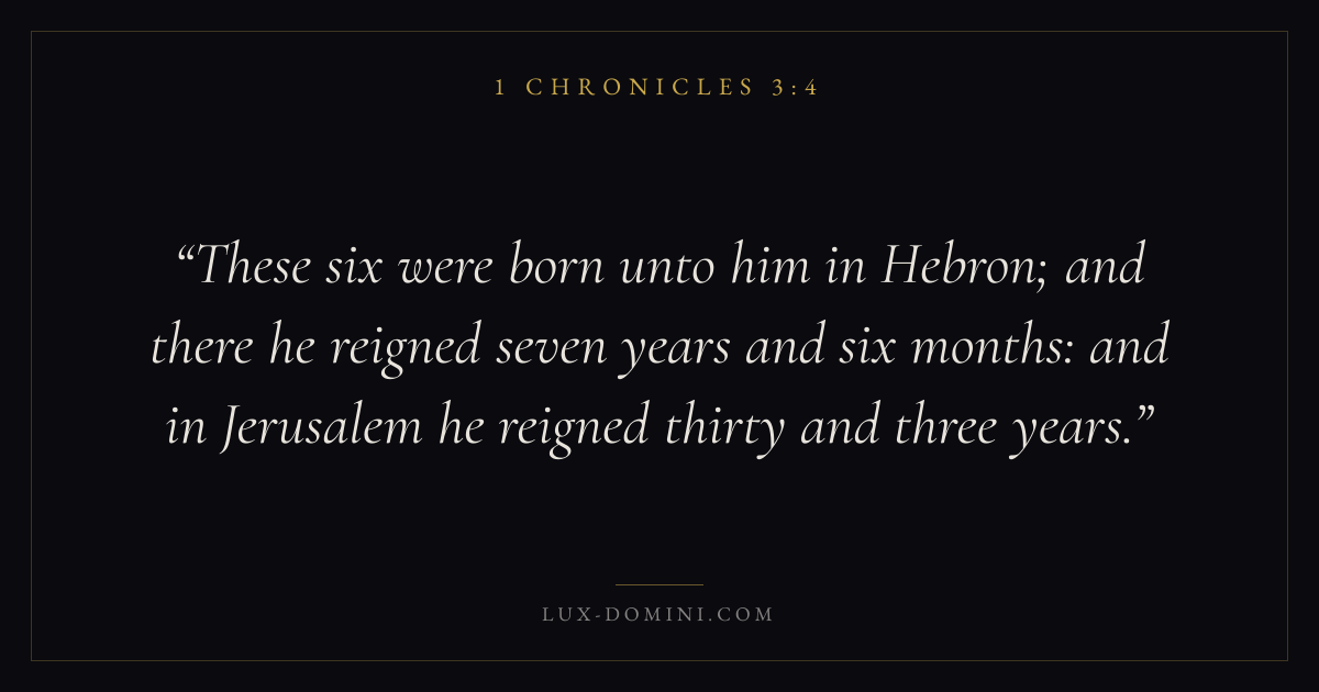 These six were born unto him in Hebron; and there he reigned seven years and six months: and in Jerusalem he reigned thirty and three years.