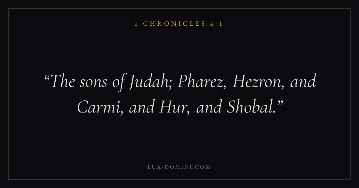 The sons of Judah; Pharez, Hezron, and Carmi, and Hur, and Shobal.