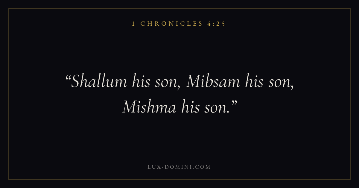 Fragrance. (1. ) One of Ishmael’s twelve sons, and head of an Arab tribe ( Gen. 25:13 ). (2. ) A son of Simeon ( 1 Chr. 4:25 ).