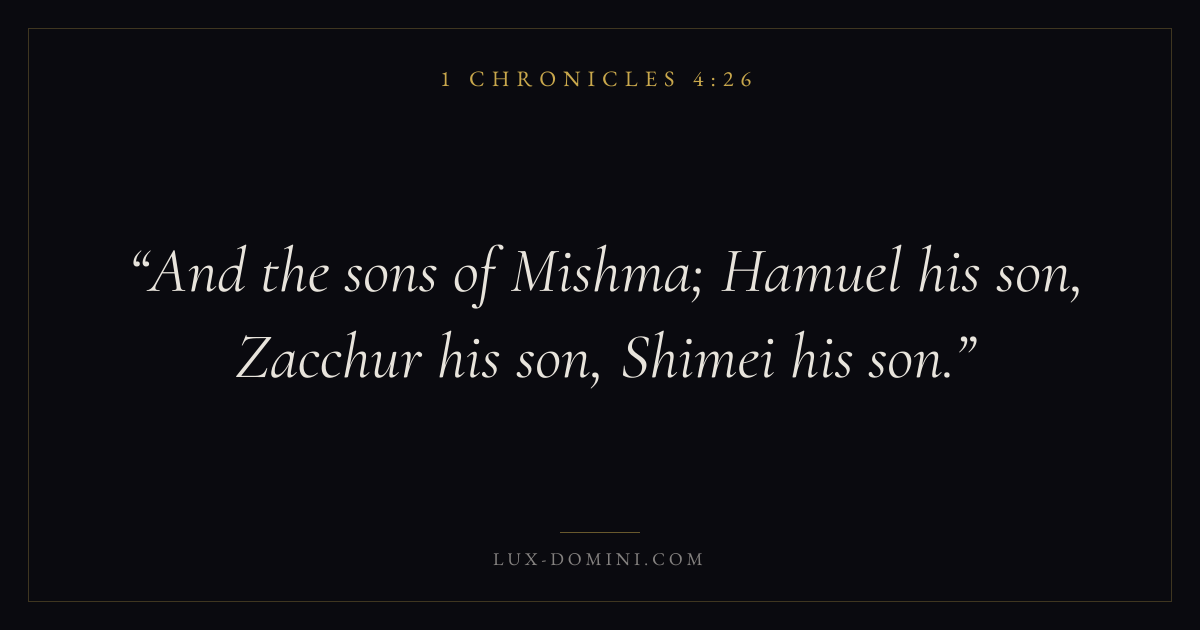 And the sons of Mishma; Hamuel his son, Zacchur his son, Shimei his son.
