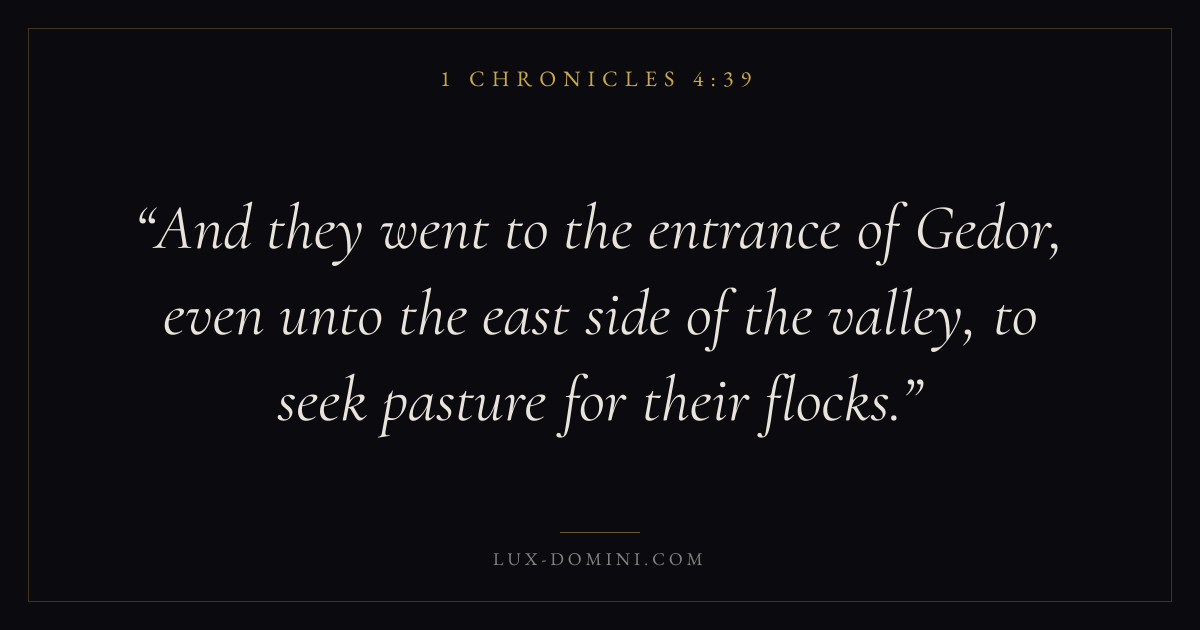 And they went to the entrance of Gedor, even unto the east side of the valley, to seek pasture for their flocks.