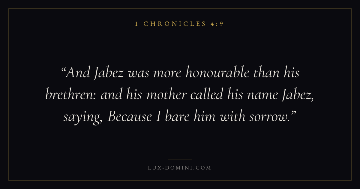 And Jabez was more honourable than his brethren: and his mother called his name Jabez, saying, Because I bare him with sorrow.