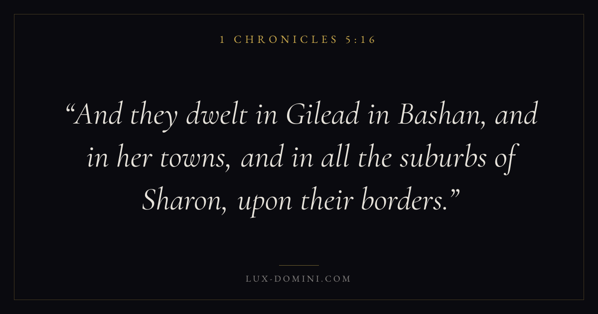 And they dwelt in Gilead in Bashan, and in her towns, and in all the suburbs of Sharon, upon their borders.